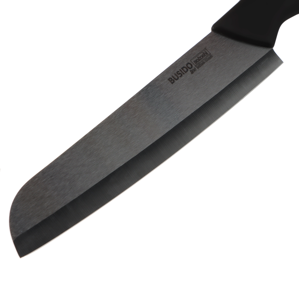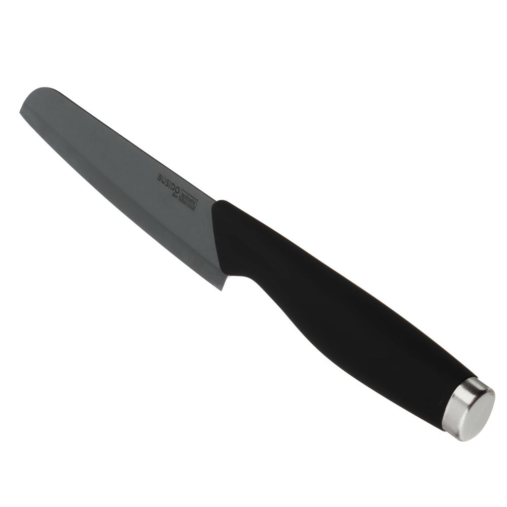 Couteau de cuisine en céramique 15 cm SATOSHI Bushido vous surprendra par sa commodité et sa précision de coupe. La lame en céramique ne nécessite pas d'affûtage fréquent. Le matériau ne réagit pas avec les alcalis et les acides, ne craint pas la rouille et conserve longtemps un aspect soigné. Un couteau de cuisine en céramique vous ravira par son excellent tranchant et sa qualité de travail. Le produit ne confère pas de goût métallique aux aliments et s'affûte facilement avec une pierre diamantée. La poignée ergonomique tient confortablement dans la main et assure une utilisation confortable de l'accessoire.