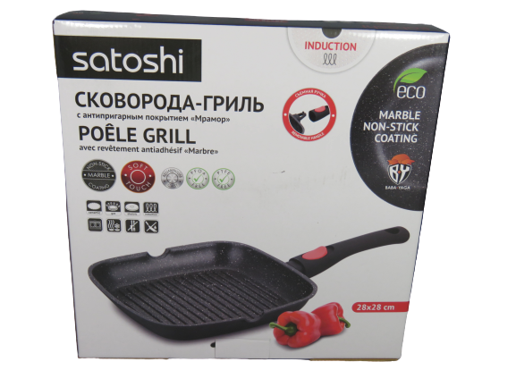 Gril carré 28cm, revêtement de marbre, poignée amovible, fonte d'aluminium SATOSHI