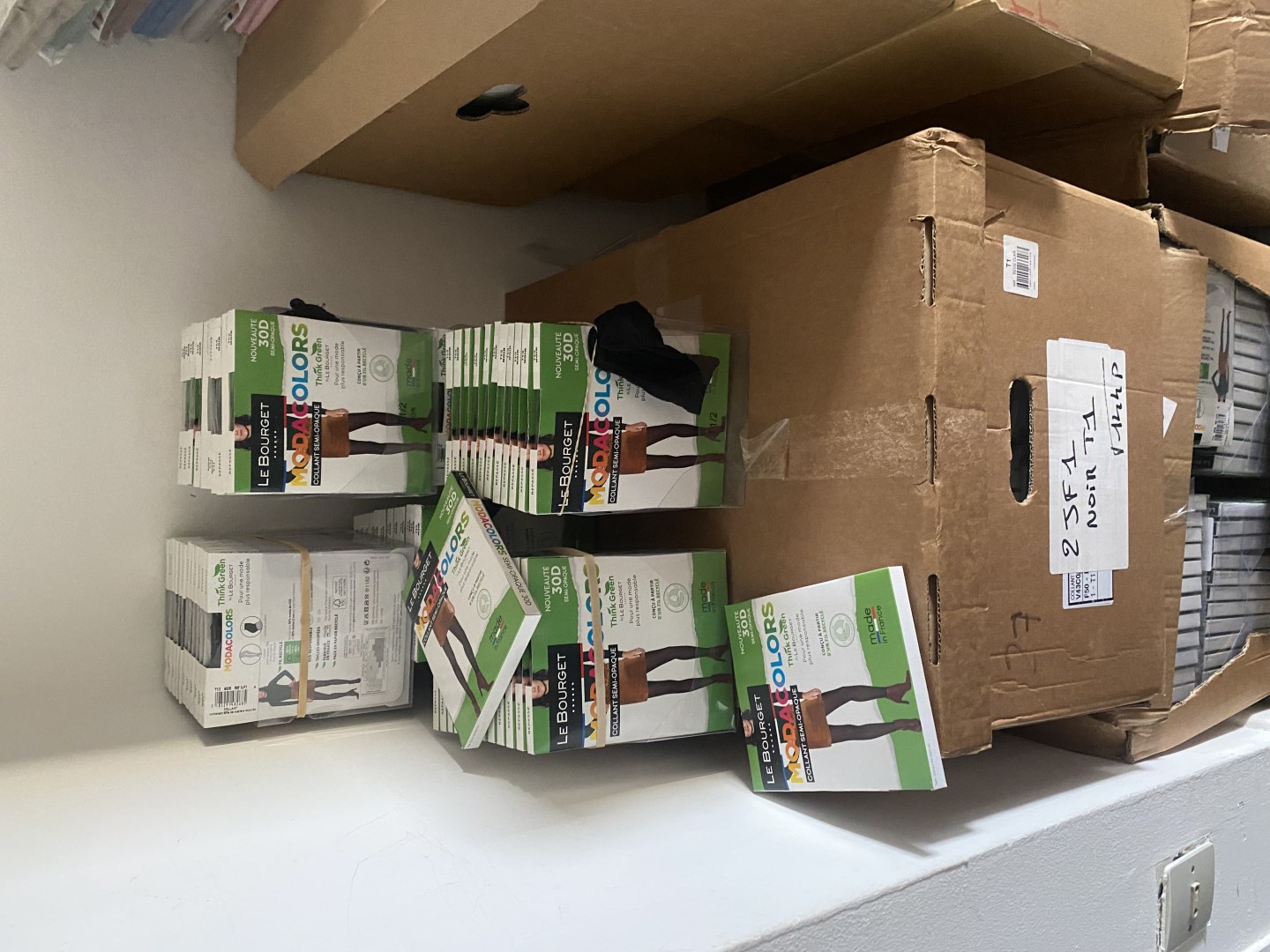collants de la marque le Bourget semi opaque noir en 30d disponible en gros à 1,50€ pièce minimum commande 100pcs. Visible sur Marseille