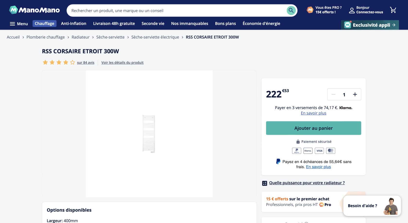 - Blanc 300 w Sèche serviette Thermor corsaire 2