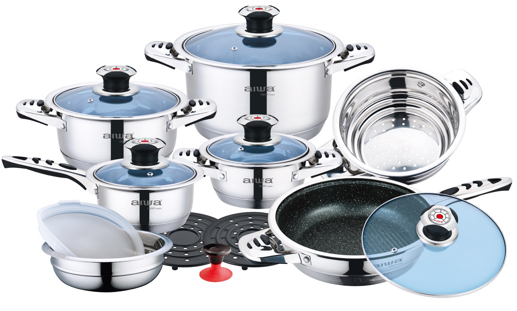 Batterie de cuisine aiwa - Acier inoxydable - 16 pièces - É