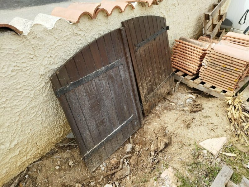 Paire de volets en bois double battant cintrés