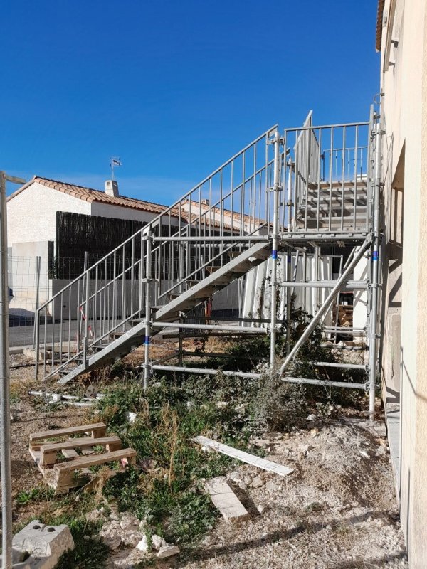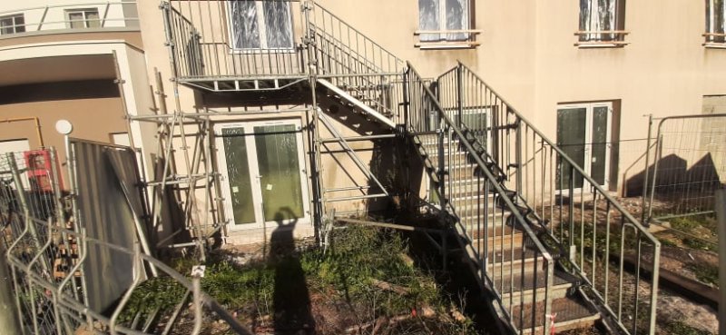 Escalier d'occasion CRABESCAL actuellement utilisé comme issue de secours en phase transitoire de chantier