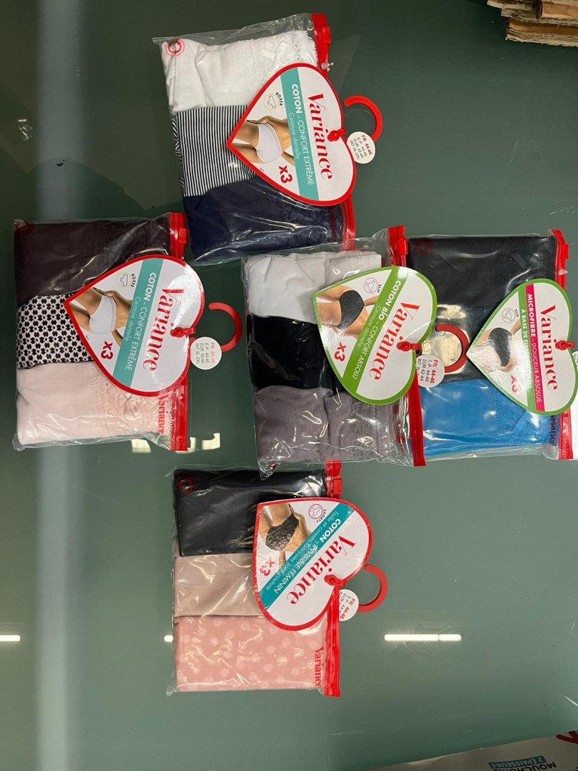 Société spécialisée dans le destockage de lingerie de marques. Il s'agit de packs de trois slips Variance. Ce sont des colis de 210 packs assortis en tailles et en modèles.