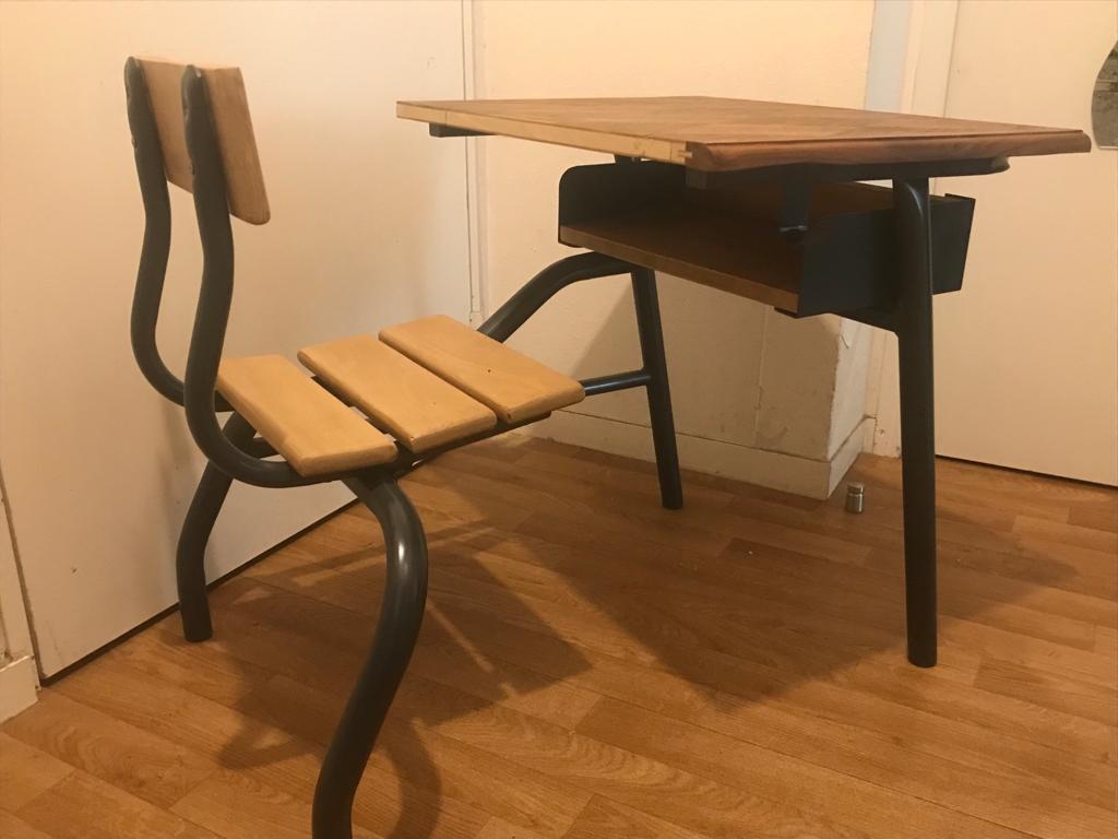 Bureau écolier vintage industriel entièrement reconditionné