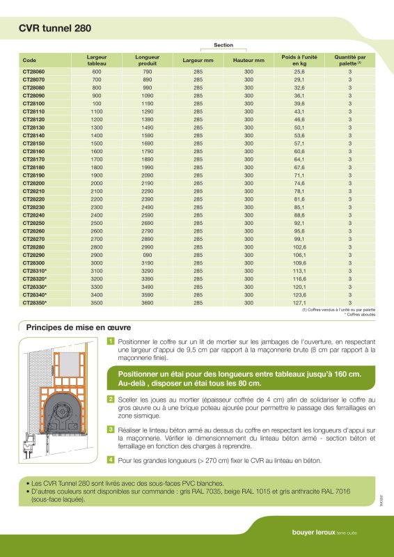 Déstockage de surplus neufs de coffres caisson de volet roulant tunnel BOUYER LEROUX BIO'BRIC d'épaisseur 28 cm et de hauteur 300 mm
