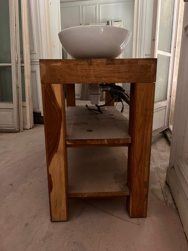 Meuble double vasque en bois massif de dimensions L120 x l50 x H79 cm