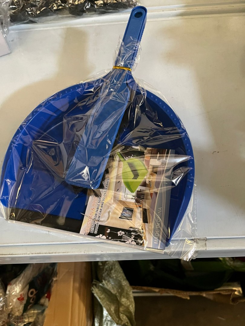 Pelle et balayette à poussière, pour nettoyage de la maison.