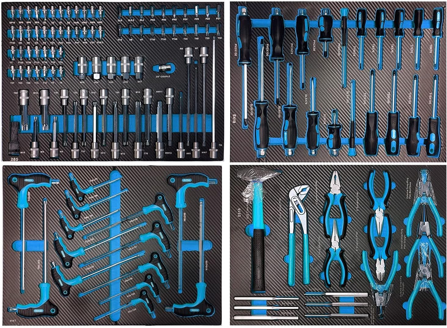 Servante d'atelier Kraft Muller KM-7-6 Bleue/Noir, 265 Outils inclus avec clé Dynamo -...