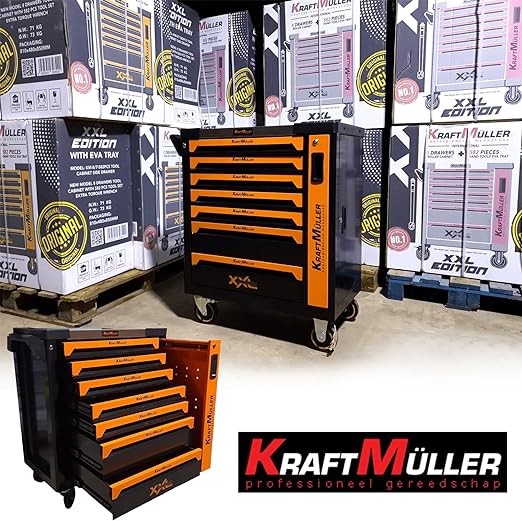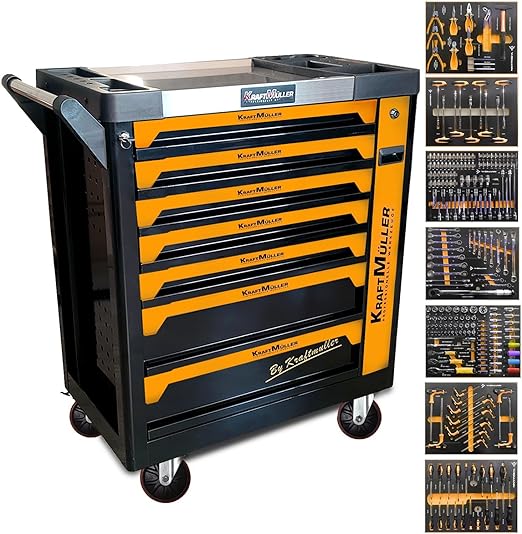 - ✅ Servante PRO Kraft Muller XXL 8/7 TOOL - ORANGE, Dotée d'un plateau supérieur en aluminium et de 7 tiroirs outillés. Deux grandes portes façade et sur le côté, pratique vous permet de ranger les sprays et autres équipements.cette servante d'atelier sera l'indispensable de votre garage ou de votre atelier professionnel, MECANICIEN, GARAGISTE, CENTRE AUTOMOBILE, MOTO, etc.