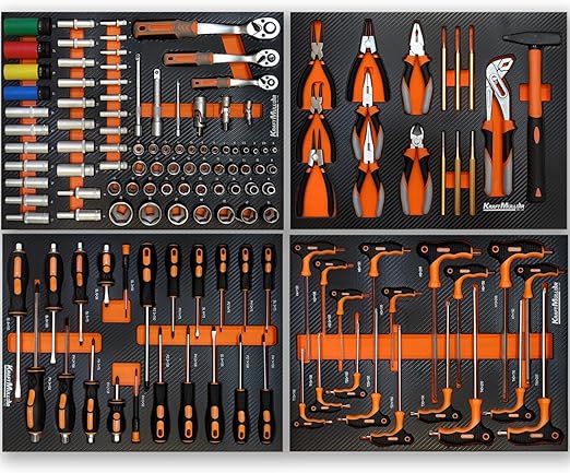 Servante d'atelier Kraft Muller KM-XXL-8/7 Orange, 275 Outils Inclus avec clé Dynamo -...