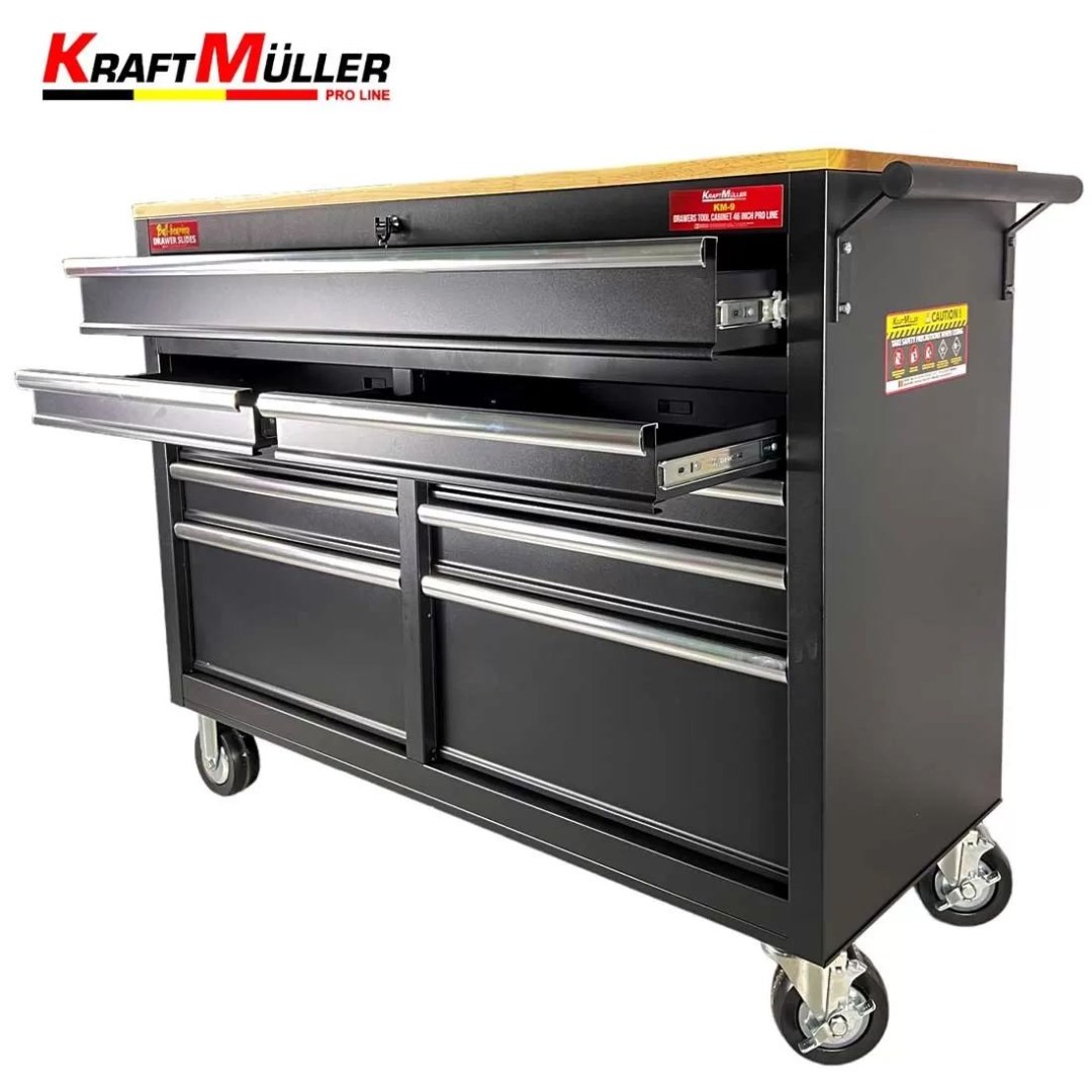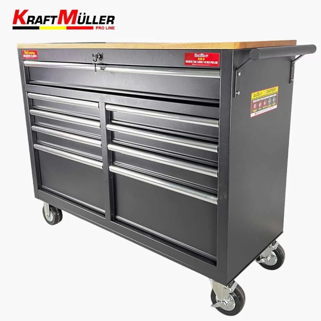 La Servante d'Atelier KRAFTMULLER de 117 cm avec Plan de Travail en Bois est votre partenaire ultime pour chaque tâche, que vous soyez un professionnel ou que vous aimiez simplement bricoler dans votre propre espace de travail.
