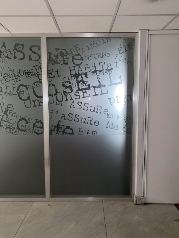 LOT 3 : 9 ml de cloisons amovibles vitrée toute hauteur avec vitrophanie et cadre aluminium vissé au bâti ou à un support pré-installé