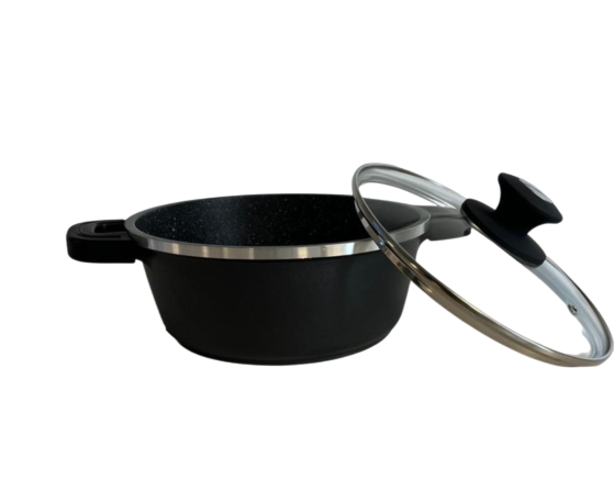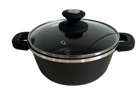 Marmite avec Revêtement Antiadhésif en Marbre et Couvercle en Verre