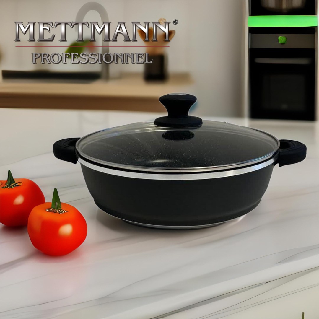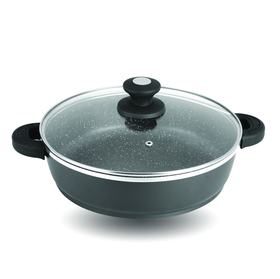 Sautoir avec Revêtement Antiadhésif en Marbre et Couvercle en Verre