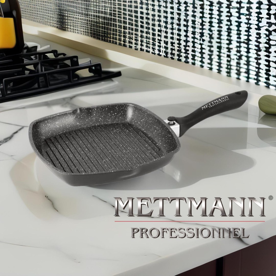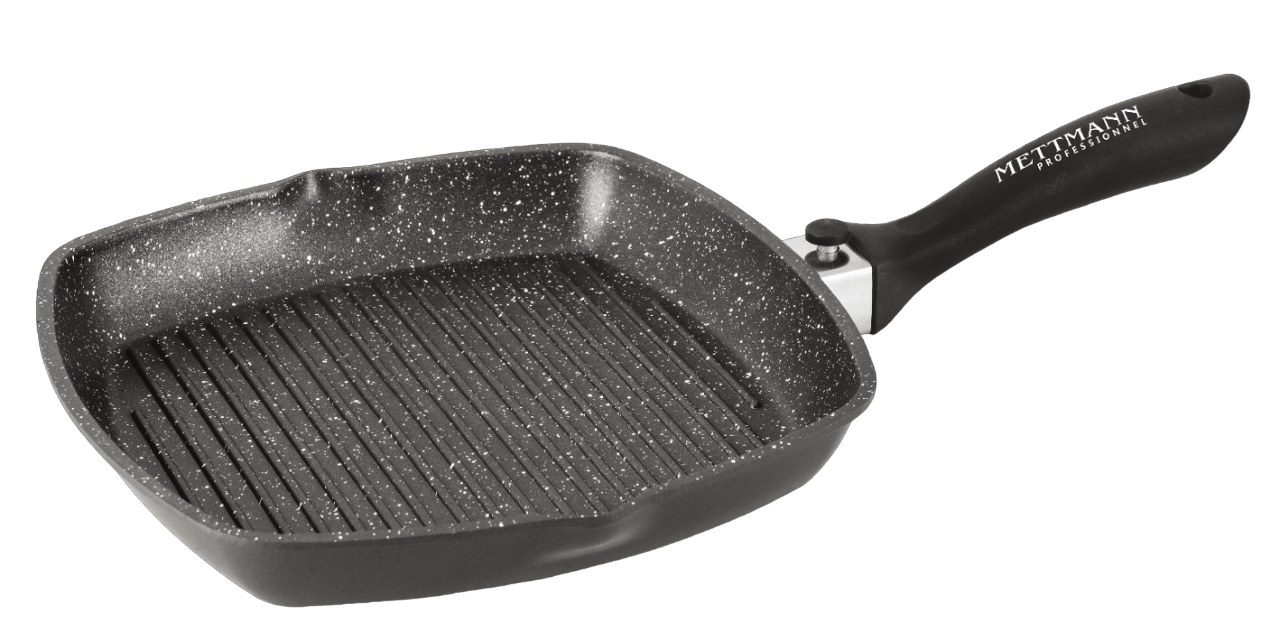 Poêle Grill 28cm, manche amovible revêtement Greblon C2+ en "marbre" Mettmann Professio...
