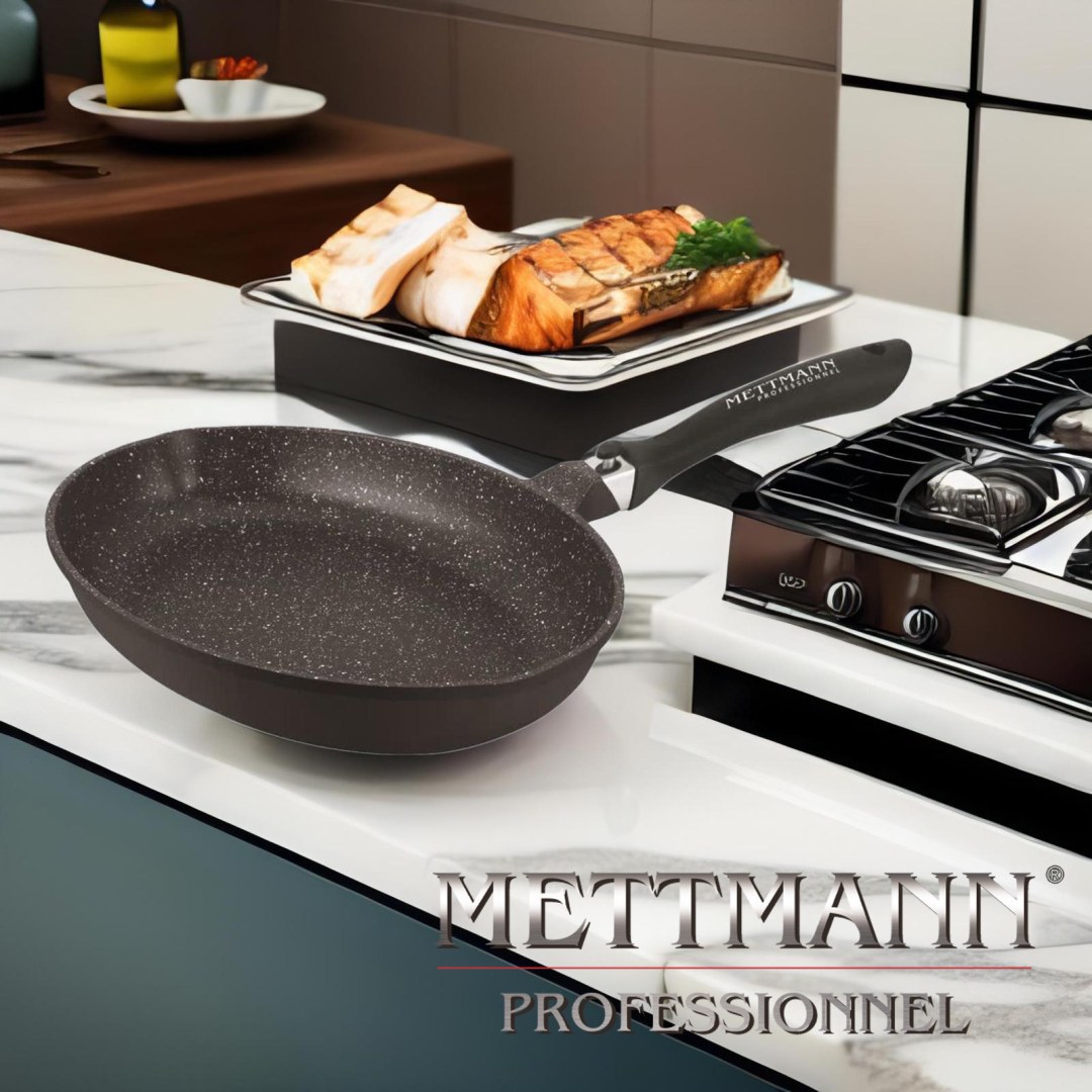 Poêle Poisson 34cm, manche amovible revêtement Greblon C2+ en "marbre" Mettmann Profess...
