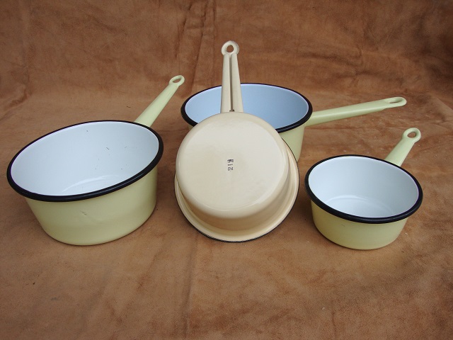 A saisir lot de casseroles émail (France) LÉOPOLD / AUBECQ/ ECT.