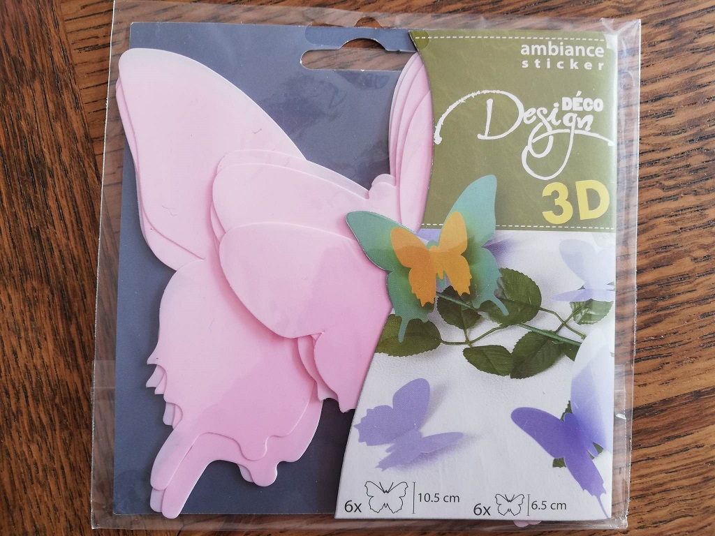 Chaque kit comprend 12 papillons en plastique: 6 grands papillons de 10.5 cm et 6 petits papillons de 6,5 cm. Un adhésif double-face à l'arrière de chaque papillon permet de les coller sur votre mur. Vous pouvez enfin plier les ailes des papillons comme vous le souhaitez pour créer l'effet 3D. Prix du kit dans le commerce 12 euros