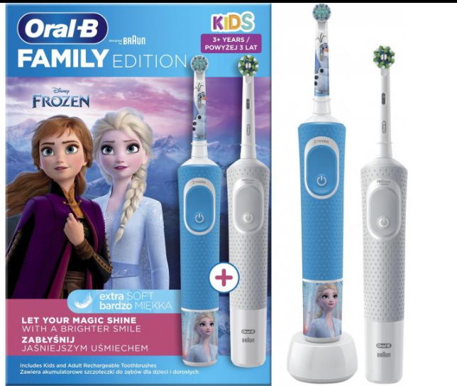 L'ORAL-B D103 Blanc + D100 la reine des neiges D103+D100 le reines des neiges est un ensemble de brosses à dents électriques conçu pour répondre aux besoins de toute la famille. Avec le D103 Blanc, bénéficiez d'une expérience de brossage avancée pour des dents plus propres et des gencives plus saines. Quant au D100 Frozen, il offre une expérience de brossage ludique et encourageante pour les enfants, mettant en vedette des personnages Frozen adorés. Ces brosses à dents électriques sont dotées de technologies avancées pour éliminer efficacement la plaque dentaire tout en offrant un nettoyage en profondeur et en douceur.