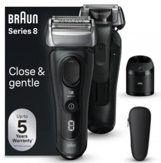 Le rasoir électrique Braun Series 8 8560cc avec station SmartCare 5-en-1 et étui de voyage - noir offre un rasage de près supérieur et précis, repensé pour un confort optimal de la peau. Les 4 éléments de rasage, avec la technologie sonique, assurent un rasage doux même sur les barbes épaisses.