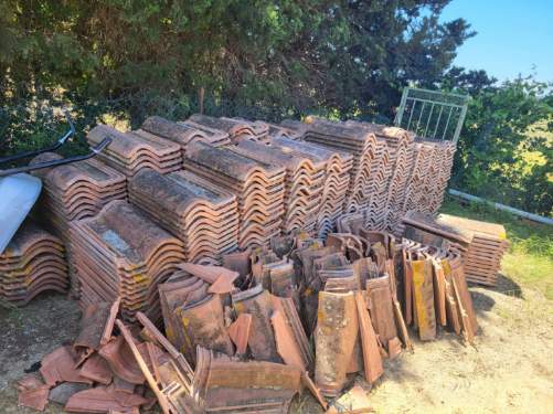 Tuiles provenant de la déconstruction d'une maison individuelle datant de 1985