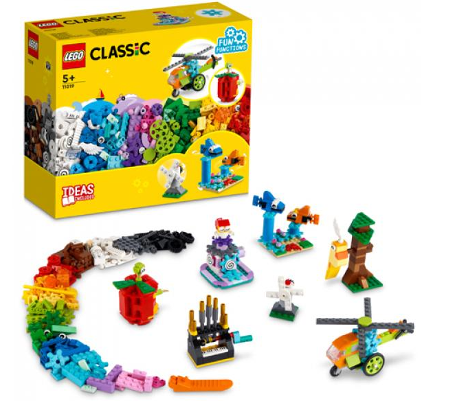 Le set LEGO® Classic Briques et Fonctionnalités (11019) inclut des pièces LEGO colorées et des instructions pour fabriquer 7 jouets amusants dotés d'engrenages. Les enfants peuvent construire des modèles avec des parties mobiles, comme une danseuse virevoltante ou un hélicoptère avec des hélices qui tournent, puis explorer le sachet de briques LEGO supplémentaires pour créer au gré de leurs envies.