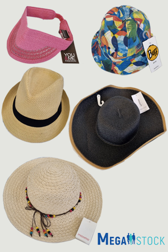 Chapeaux d'été pour hommes et femmes, mix de modèles issus des collections de marques européennes, destockage.