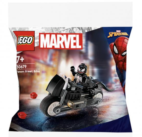Le LEGO Super Heroes - Venom Moto de Rue (30679) est un petit ensemble de construction mettant en scène le célèbre anti-héros Venom de l'univers Marvel. Il comprend une moto de rue noire et rouge avec des détails inspirés du costume de Venom, comme une longue langue fourchue à l'avant et une queue articulée à l'arrière.