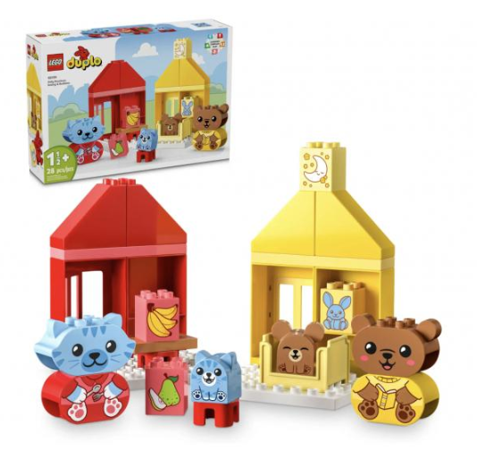 Les jouets LEGO DUPLO constituent un excellent moyen d'apprendre. Grâce à d'amusants jeux de rôle, les parents peuvent expliquer aux tout-petits l'importance des rituels. Les enfants développent leur motricité fine en assemblant les briques colorées des 2 jouets. Afin de simplifier la construction, chaque rituel est associé à un code couleur.