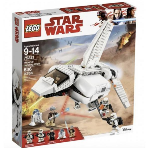 Les aventures galactiques sont recrées avec l'Imperial Landing Craft LEGO® Star Wars 75221. Comme dans le film Star Wars : Un nouvel espoir, ce modèle amusant présente des ailes qui se replient pour les modes de vol et d'atterrissage, des fusils à tenons, un train d'atterrissage, un cockpit pour figurine qui s'ouvre et des panneaux supérieurs qui s'ouvrent avec une rampe d'accès coulissante. Il y a également de la place à l'intérieur pour installer les troupes impériales (assises ou debout), afin que tous les dirigeants impériaux puissent les amener partout où c'est nécessaire dans la galaxie. Cet ensemble inclut 4 figurines LEGO et un droïde R2-D2.