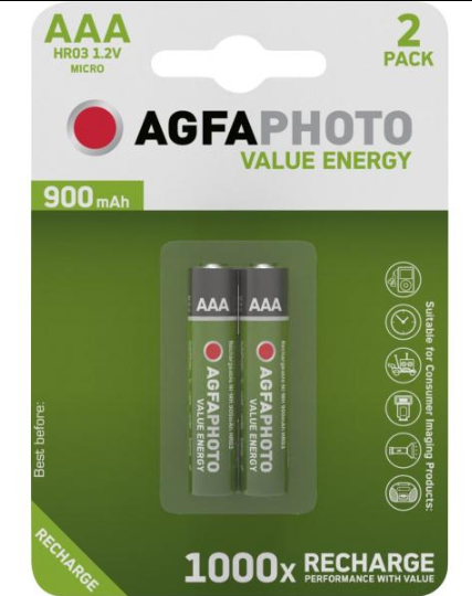 AGFAPHOTO Akku NiMH, Micro, AAA, HR03, 1.2V/900mAh - Blister (Pack de 4)