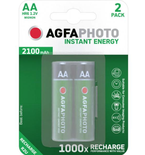 AGFAPHOTO Piles Rechargeables AA Mignon Accu Direct Energy 2100mAh (2-Pack)