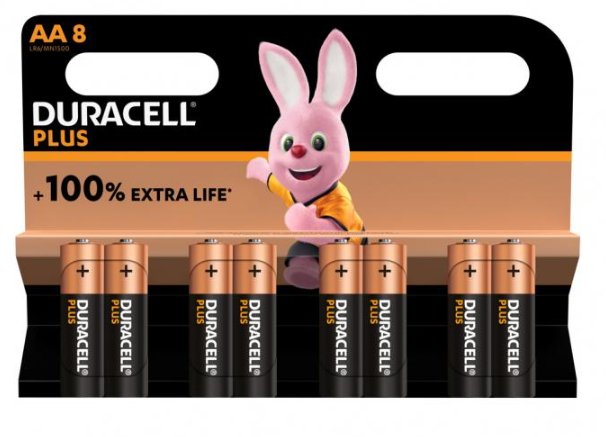 Duracell Pack de 8 piles Alkaline Plus Extra Life MN1500/LR06 Mignon AA