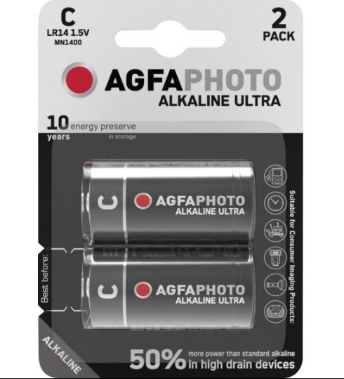 AGFAPHOTO Pack de 2 piles Ultra Alkaline Baby C