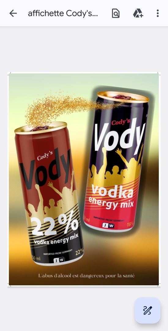 Je distribue le produits trés prisé des soirée festif la Cody's VODY VODKA ENERGY DRINKS au détails et semi gros .