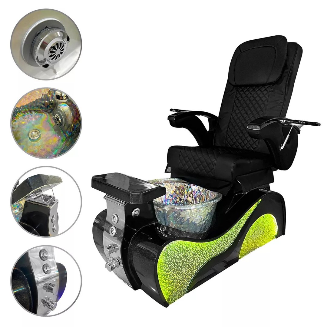 Le fauteuil spa pédispa Ricci II se distingue par son éclat incomparable, grâce à son superbe éclairage LED et ses côtés Diamond. Ce modèle est conçu pour offrir des expériences de pédicure luxueuses à vos clients, devenant ainsi un incontournable de votre salon de manucure-pédicure.