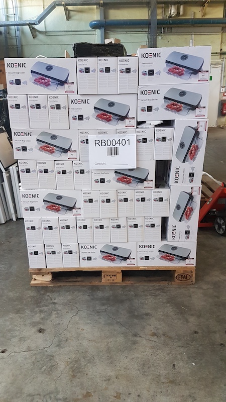 Nous sommes heureux de vous proposer des palettes de produits neufs : balances de cuisine, machines à sceller les sacs sous vide, micro-ondes, radiateurs soufflants, etc.