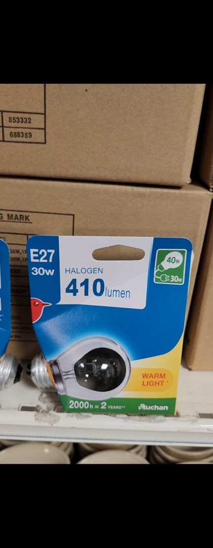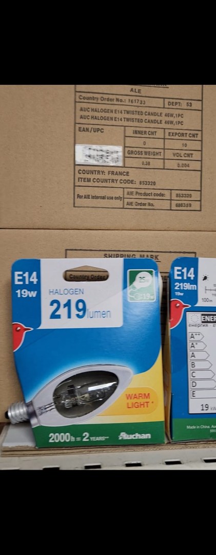 Destockage d'un important lot d'ampoules halogène de la marque Auchan, pour revendeur sur les marchés,les brocante, ou magasins discounter, etc... 3 ou 4 modèles différents, pour lampes de chevet ou plafonnier. Très petit prix. 3€ le carton de 10 ampoules pour la totalité. Possibilité de vente en demi gros. Prix sur demande selon quantité.