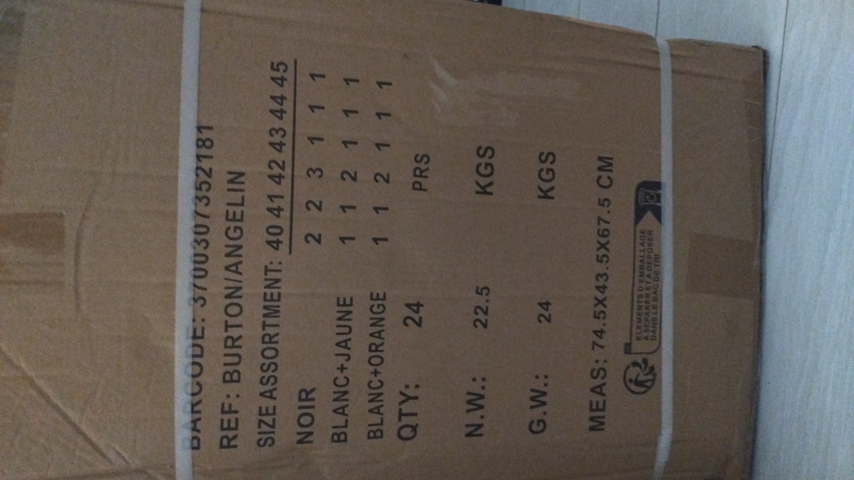 Quantité : 24 par col Prix : 13€/paire soit 288 €