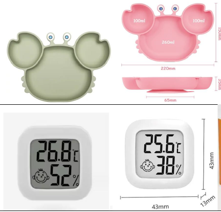 Vente d'un stock neuf et varié de 3500 pièces comprenant essentiellement du petit matériel de puériculture : assiettes silicone bébé - biberons mains libres - seringues de lavage et tétines pour administration de médicaments ou encore éponges douces et exfoliantes pour le corps ou encore finger skates - zipper bags et thermomètres/hydromètres intérieurs.