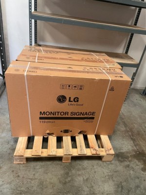 Lot d'environ 190 écrans d'occasion LG 108 cm/94cm avec télécommandes dans leurs cartons d'origine, ainsi qu'une dizaine d'écrans neufs 119cm et 94cm. Retrait sur place ou livraison avec supplément selon distance