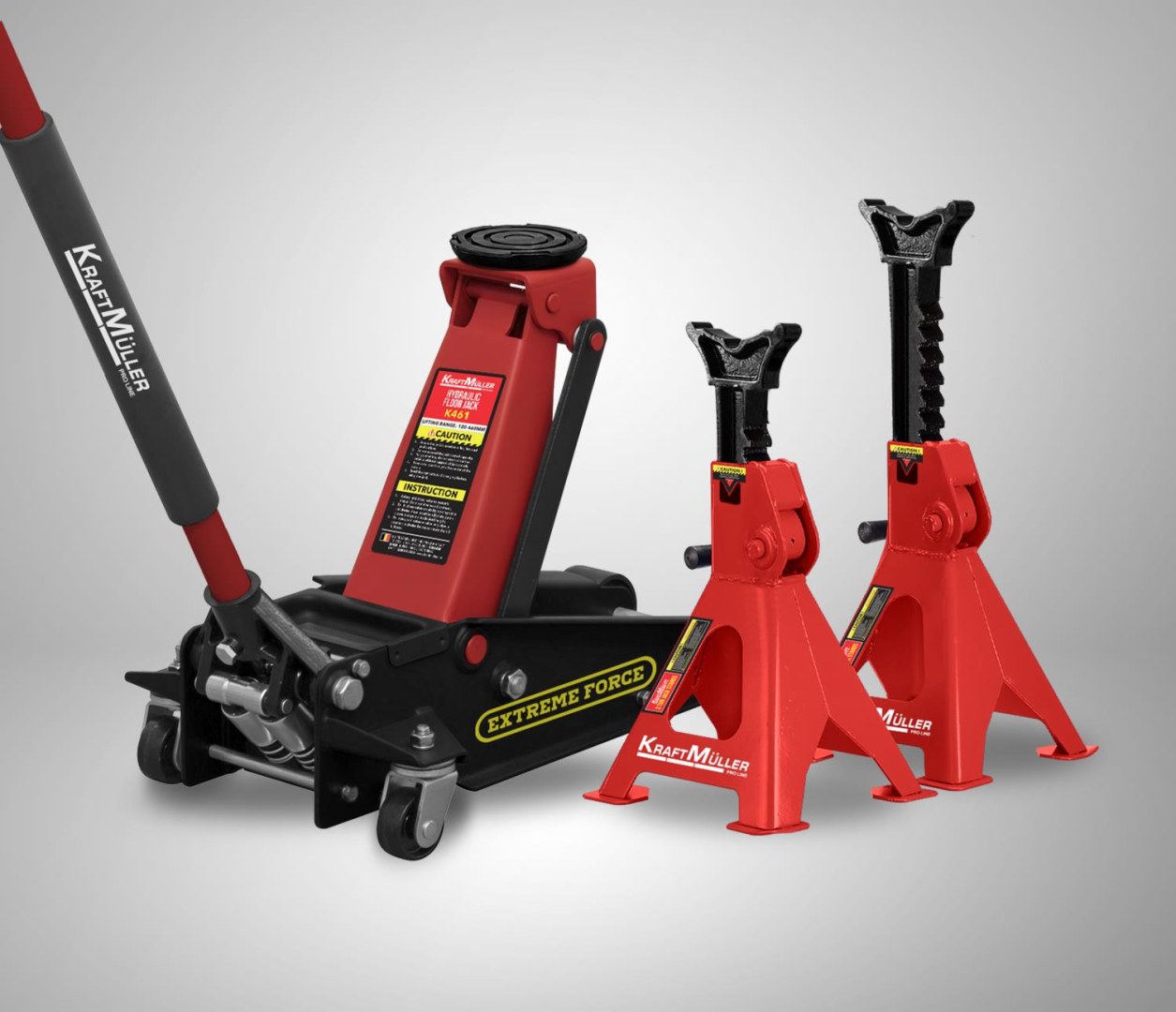 CRIC ROULEUR PROFESSIONNEL 3 TONNES KRAFTMULLER+JEU DE 2 CHANDELLES Kraftmuller A CRÉMAILLÈRE 6T GAMME PROFESSIONNEL.