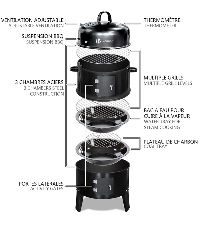 LOT EN DESTOCKAGE Barbecue Fumoir grill à charbon de bois BBQ avec Thermomètre