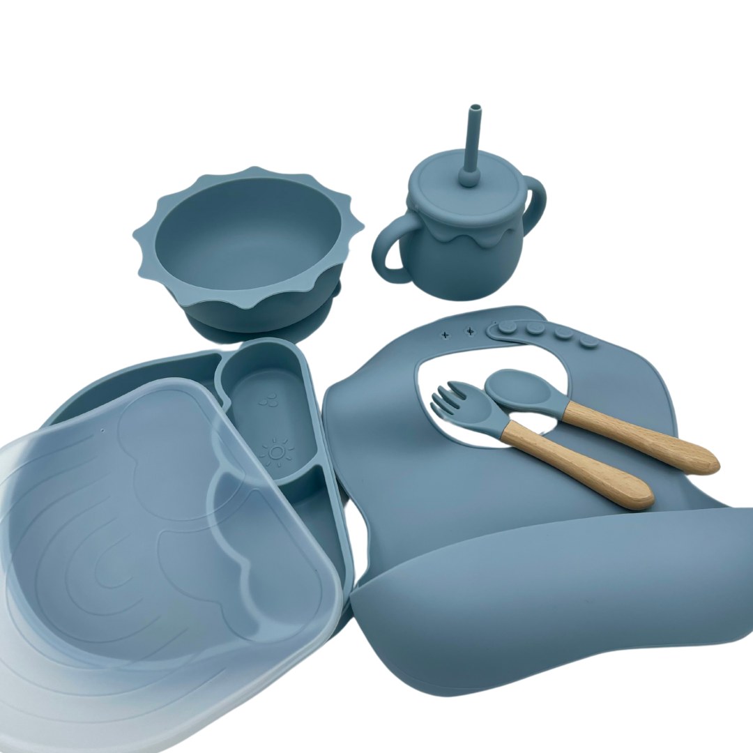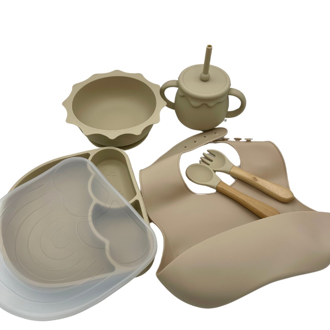 Lot de 5 coffrets repas bébé enfant en silicone 6 pièces. Kit repas bébé et enfants bas...