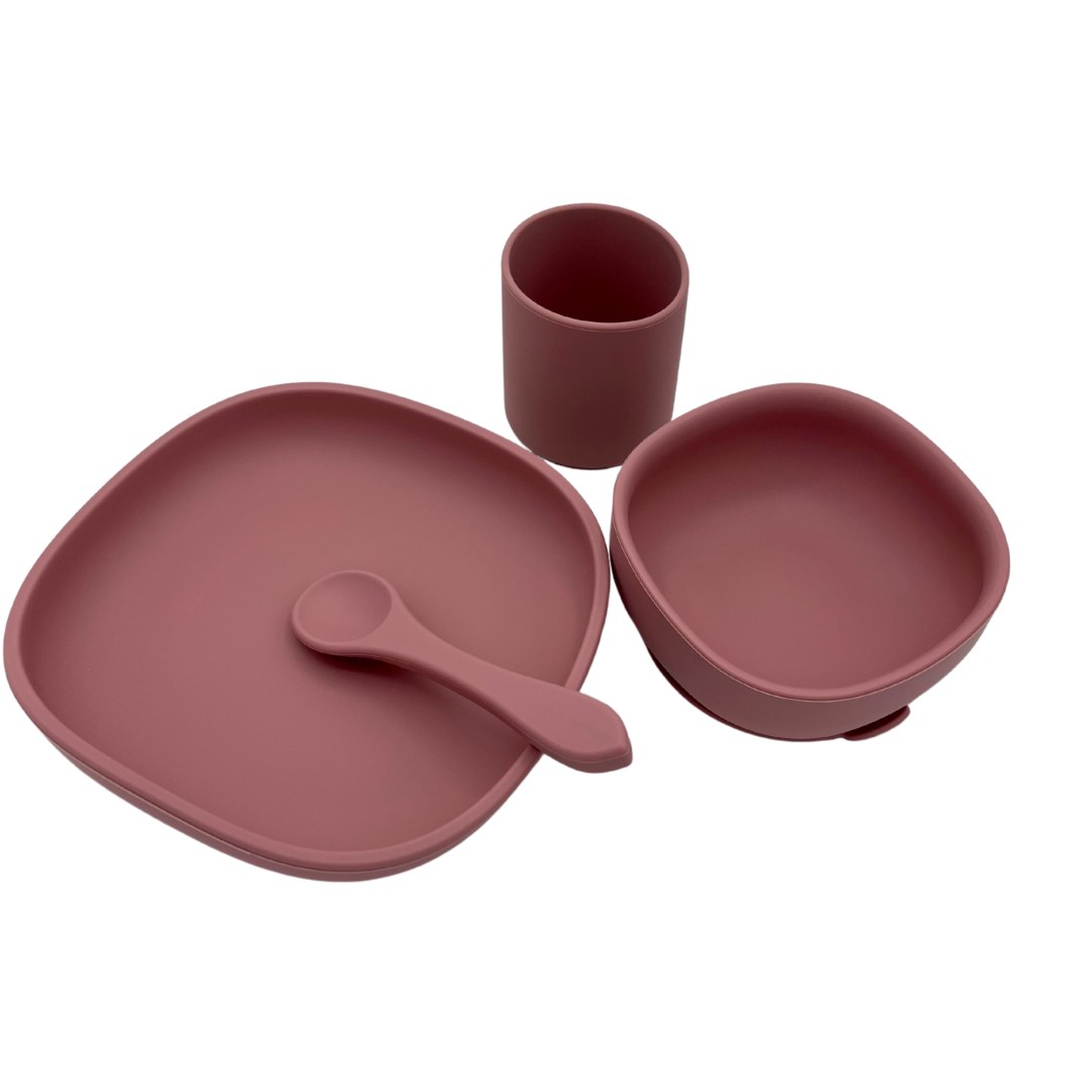 Set repas bébé enfant en silicone 4 pièces, antidérapant