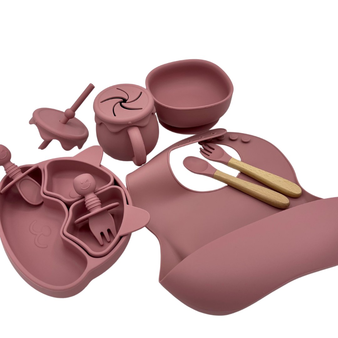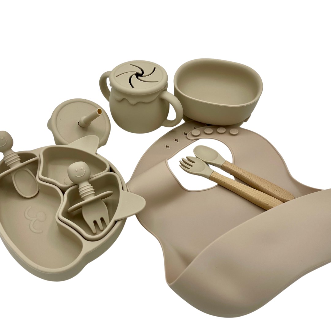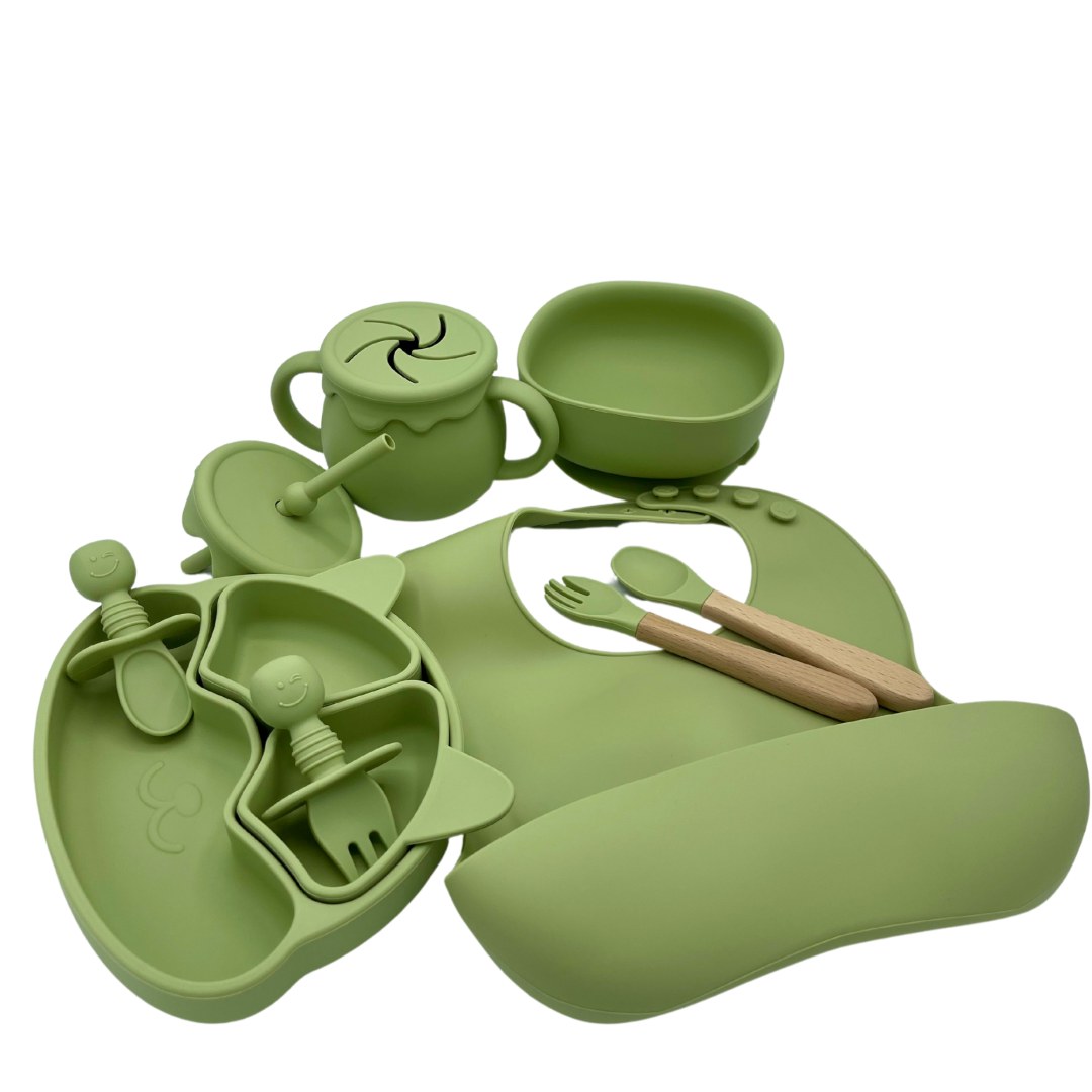 Lot de 5 coffrets repas bébé enfant en silicone 9 pièces. Kit repas bébé et enfants bas...