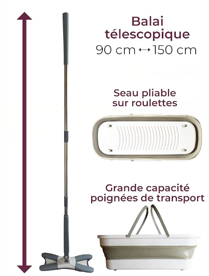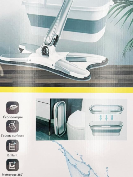 Balai serpillière Twist 360° avec Seau pliable Grande capacité