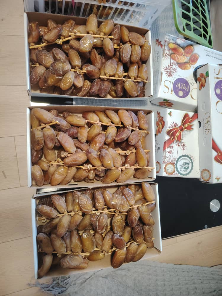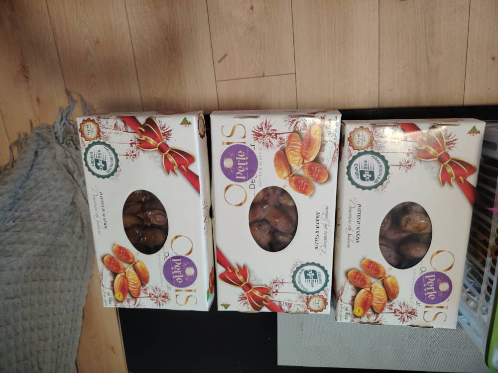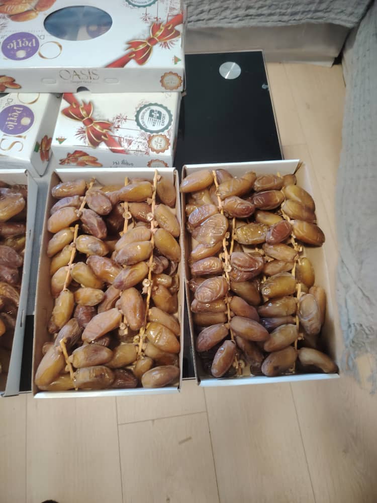 Dattes Deglet Nour d'Algérie Nouvelle récolte. branchées en plusieurs formats disponibles, vendus en emballage carton. Produits disponibles à la palette ou au conteneur en France. Nous produisons les dattes, les importons et les distribuons en Europe. Livraison possible dans toute l'Europe. Avant toute livraison nous proposons une visio par téléphone afin de montrer la marchandise et sécuriser ainsi la transaction. Prix varie en fonction de la quantité commandée. Personne à contacter par telephone 0751138059 par whatsap : Mr : Mohamed : 0033698522256 Localisation : Paris