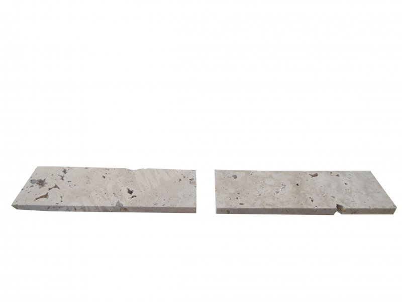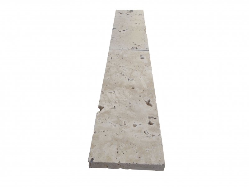 Travertin Beige Clair Couvertine 20,3x61 cm Épaisseur : 3 cm Finition : Antique & Vieilli Qualité : Rustique Bord Droit